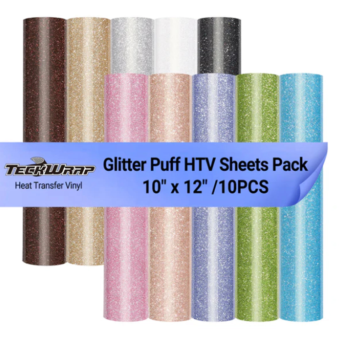 Glitter Puff HTV Sheet Pack (10pc) - Heat Transfer Vinyl