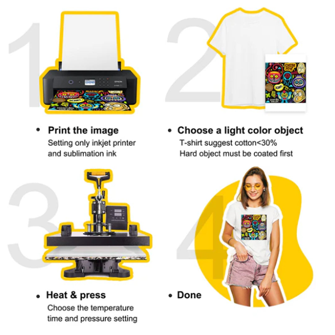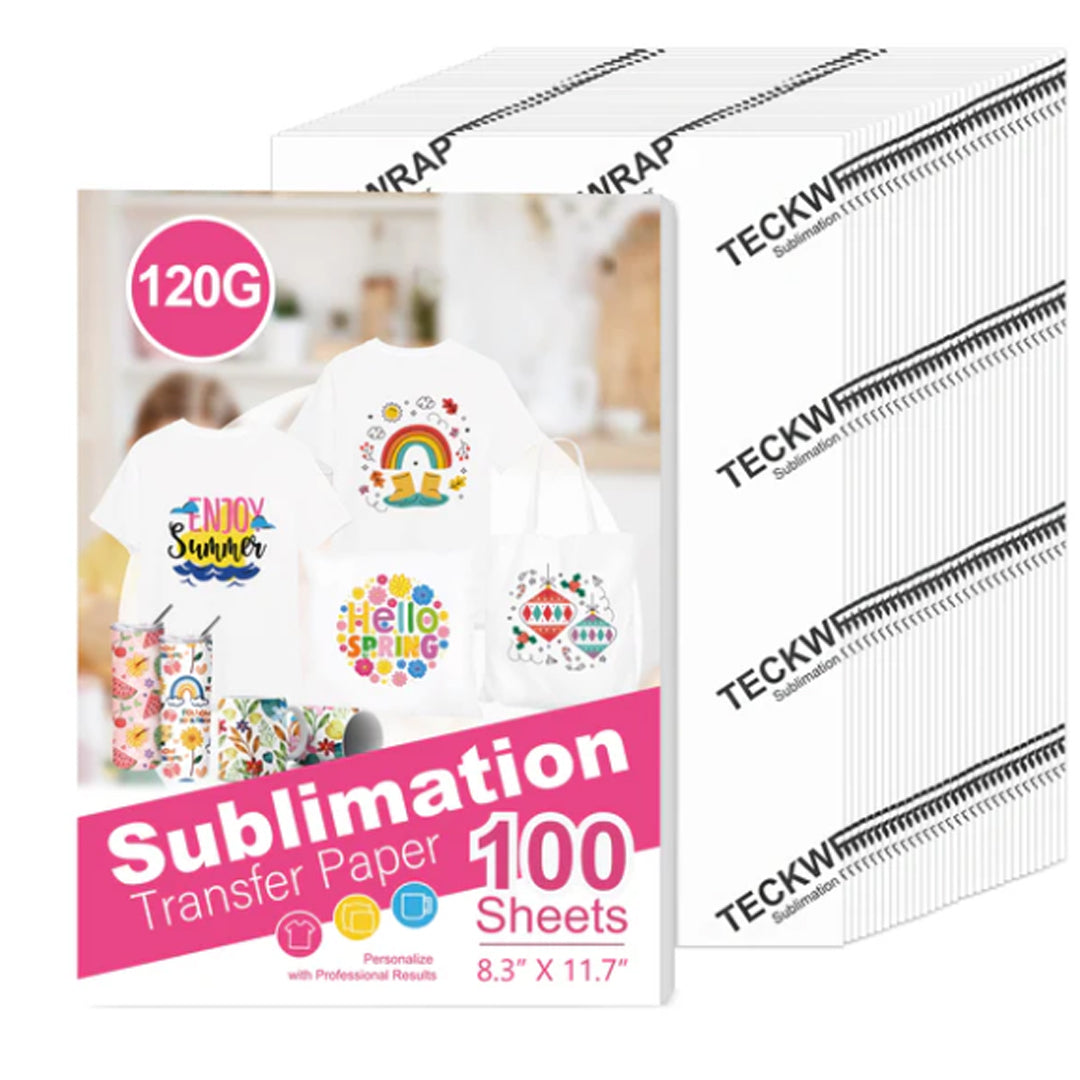 TeckWrap Sublimation Paper in standard A4 size. Print your desired image on the white side with sublimation ink, heat press your design, done!